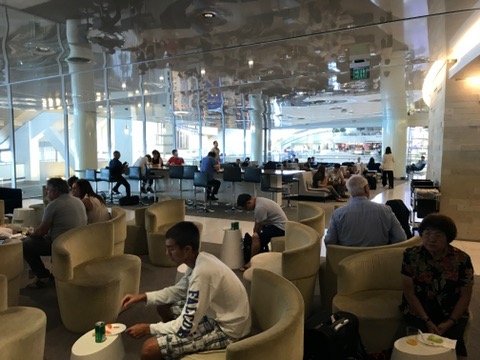 One of the perks of a credit card I use is access to some airport lounges on a card called Priority Pass. I was able to get my mom, Murphy, and I into the Korean Air Lines Lounge in the International Terminal at LAX on the way to Japan. Free food and drink, plus it beats fighting the crowds for chairs at the gate!