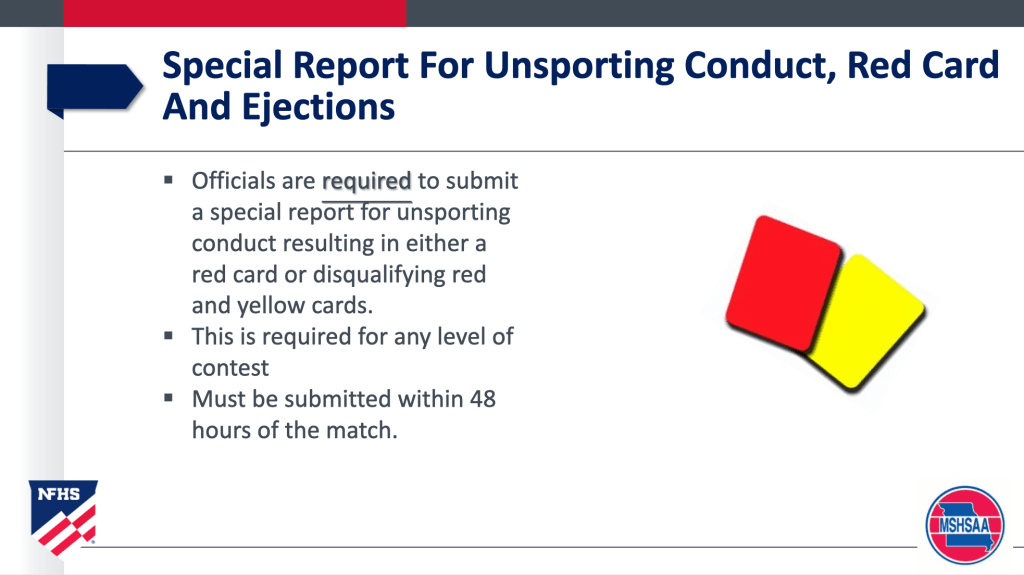Here’s when to fill out MSHSAA special reports if there are unsporting conduct cards given during a match: