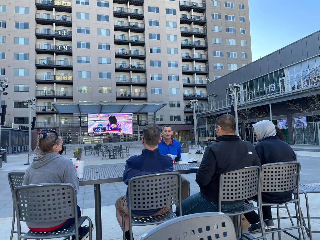 Right next to the hotel, there is a open air area with a huge television called the Capitol District with several restaurants and a convenience store and that was a place where we got together to eat and watch.