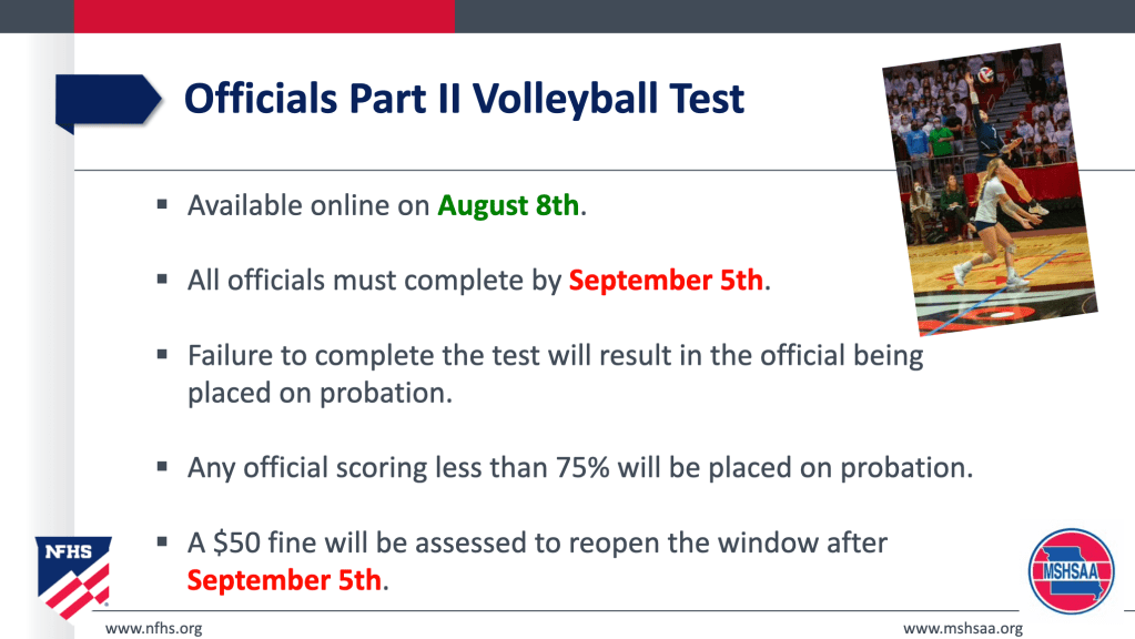 •Make sure to use NFHS rules as written in the rules book without MSHSAA modifications