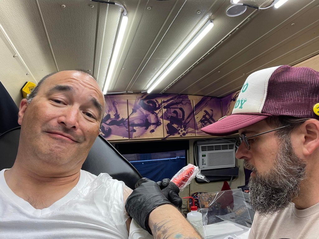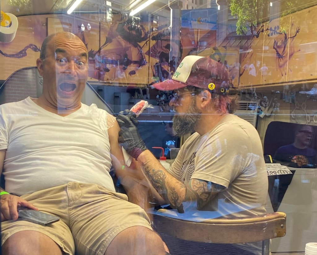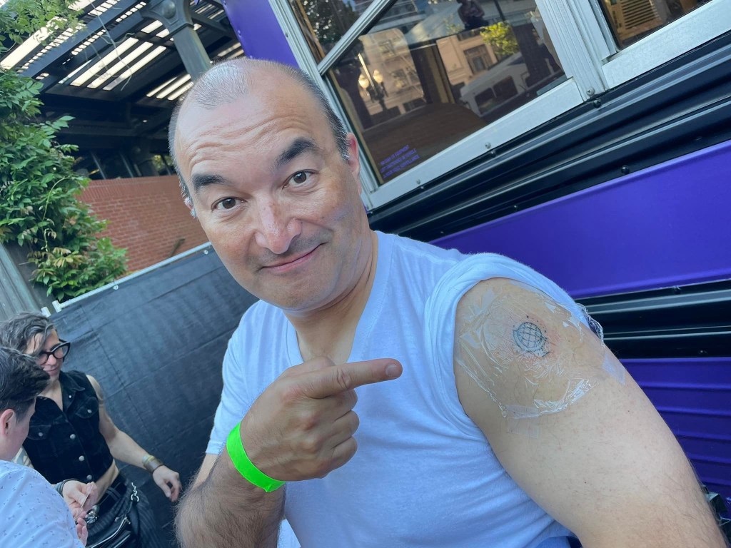 Believe it or not, at the age of 48, I got my first small, but actual tattoo of a globe (which is one symbol of WDS) on Friday night at the Opening Party.