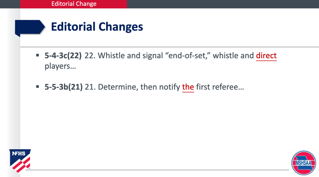 2021-22 NFHS VOLLEYBALL RULES CHANGES